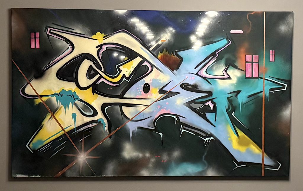 Poet62 canvas 160cm x 200cm, Spraypaint, acrylics & marker, Berlin