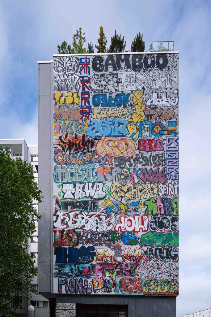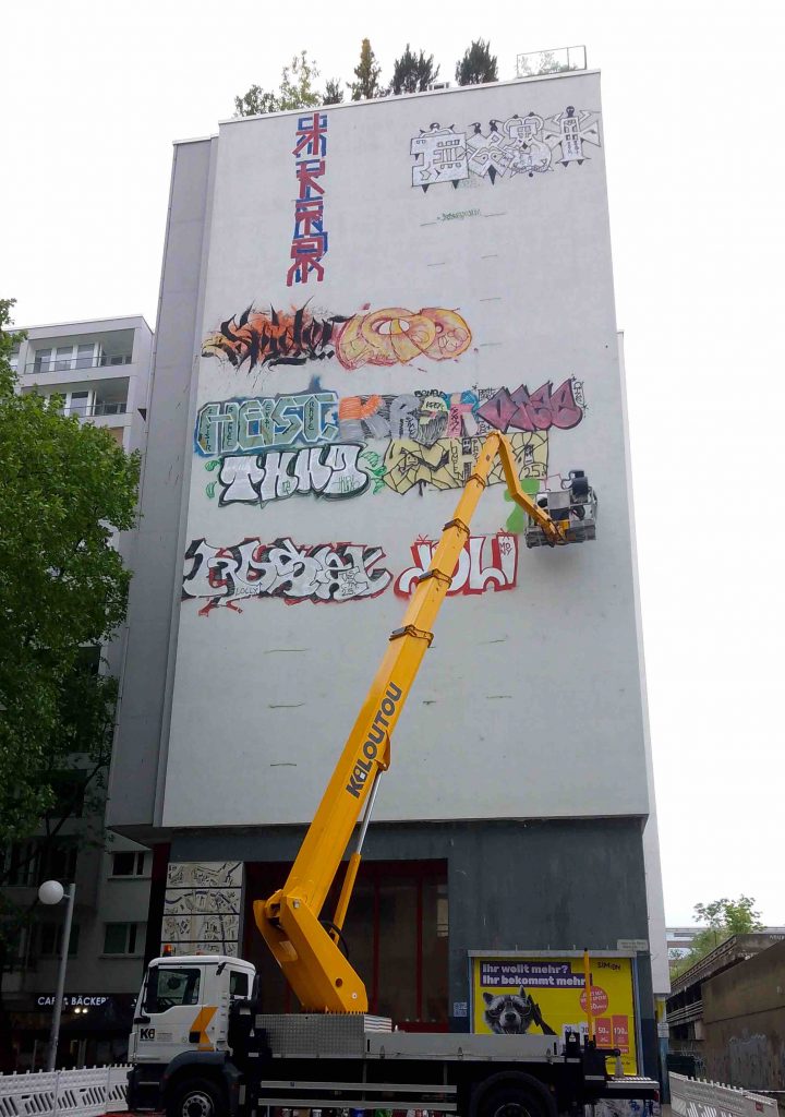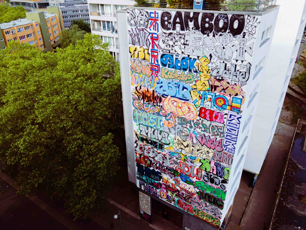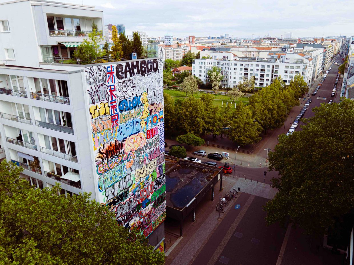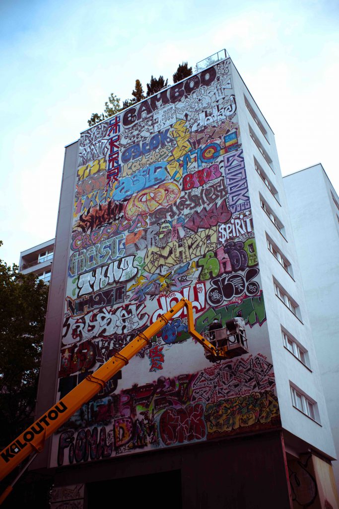 Der US-amerikanische Künstler Brad Downey präsentiert „VANDALISM – A Social Sculpture“ an der Fassade der Friedrichstraße 245 A in Berlin-Kreuzberg. „All the good people from Berlin were invited“.